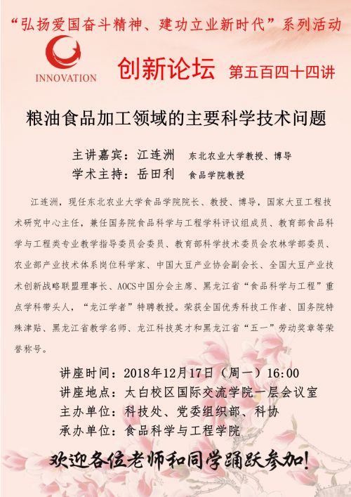 上一条:西北大学创新论坛第六百二十三讲(“弘扬爱国奋斗精神、建功立业新时代”系列活动):创新发展与乡村振兴 下一条:西北大学创新论坛第五百四十二讲(“弘扬爱国奋斗精神、建功立业新时代”系列活动):水产品绿色加工理论与技术