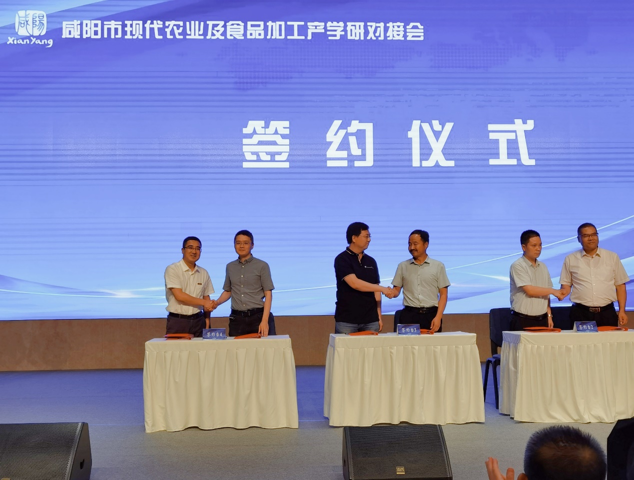 7月2日下午,由咸阳市科学技术局、咸阳市农业农村局、咸阳市乡村振兴局联合举办的“咸阳市现代农业及食品加工产学研对接会”在陕西咸阳高新区召开。beat365在线体育官网副院长赵会武,教师郭森参加此次会议,对接会分企业与高校院所签约仪式、高校及科研院所代表推介科技成果、企业技术需求发布及对接交流三部分进行。