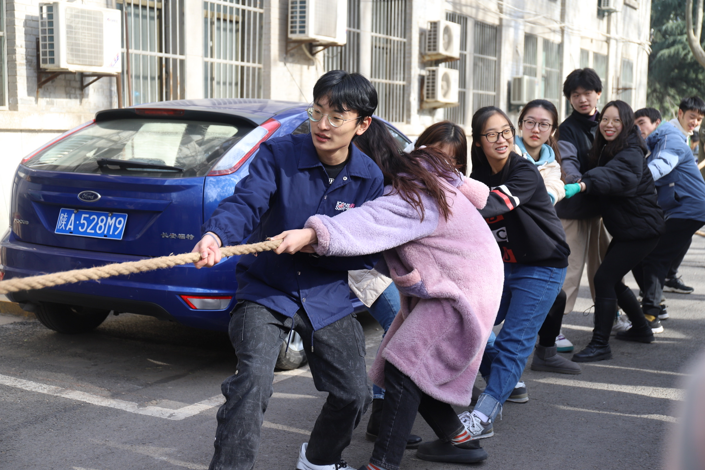 虽在十二月寒冬,但不论是参赛者还是拉拉队,都热情高涨。随着一声哨响,比赛正式开始,参赛队员们紧握长绳,卯足了劲拼命往后拉,未参赛的同学自发组队为比赛队员呐喊加油。哨子声、呐喊声此起彼伏,现场激烈的比赛将整个活动推向了高潮!队员们整齐划一的动作充分展现了班级的团结协作能力和体育竞技精神,为到场观看的师生们献上了一场精彩的视觉盛宴。