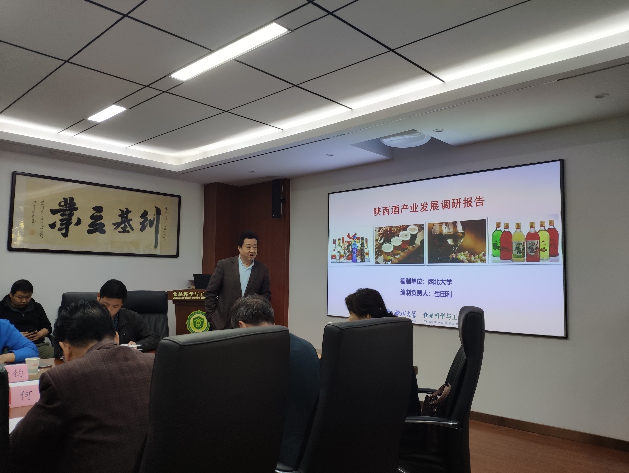 岳田利首先代表其科研团队做了关于“陕西酒业发展研究报告”的汇报,报告从区域结构、市场规模和行业效益、市场价格、进出口市场等方面采集挖掘了国际、国内、陕西等酒行业的发展大数据,解析了国内外酒产业发展的趋势,提出我省酒产业存在四大问题和陕西酒产业高质量发展“一核两翼”三大战略、八大对策与建议。