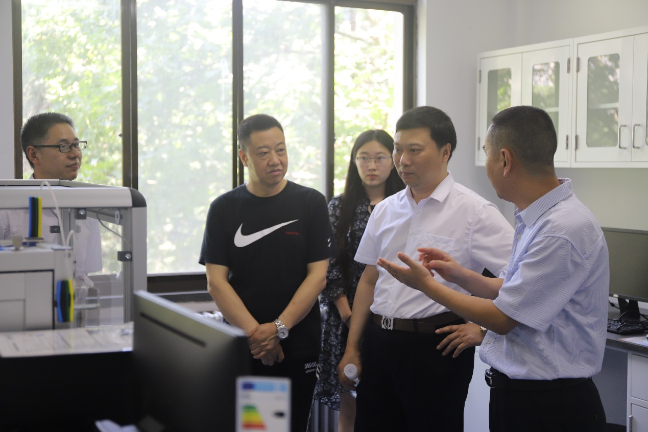 赖绍聪副校长首先来到四层学科平台实验区域,重点了解了beat365在线体育官网大型仪器设备的配置、使用与管理,听取硬件设备建设方面的情况及有关仪器设备检测性能、运行情况等方面的介绍。他现场观看了三重四级杆液质联用仪、电感耦合等离子体质谱仪的运行,咨询了气象色谱仪和院子吸收光谱仪的使用情况,随后,他还考察了本科教学实验平台和感官评价实验平台,听取了院领导的口头汇报,对学院在短期内达成的实验室建设效果表示满意,对学院学科建设取得的成绩表示肯定,要求学院围绕立德树人根本任务,抓住十四五规划的契机,以人才培养为中心,以学科建设为龙头,坚持目标导向和问题导向,再接再厉,在本次2020软科世界一流学科排名进入全球201-300名的成绩基础上,争取在短期内完成一级博士点建设等一系列任务,不断提升建设水平和影响力。