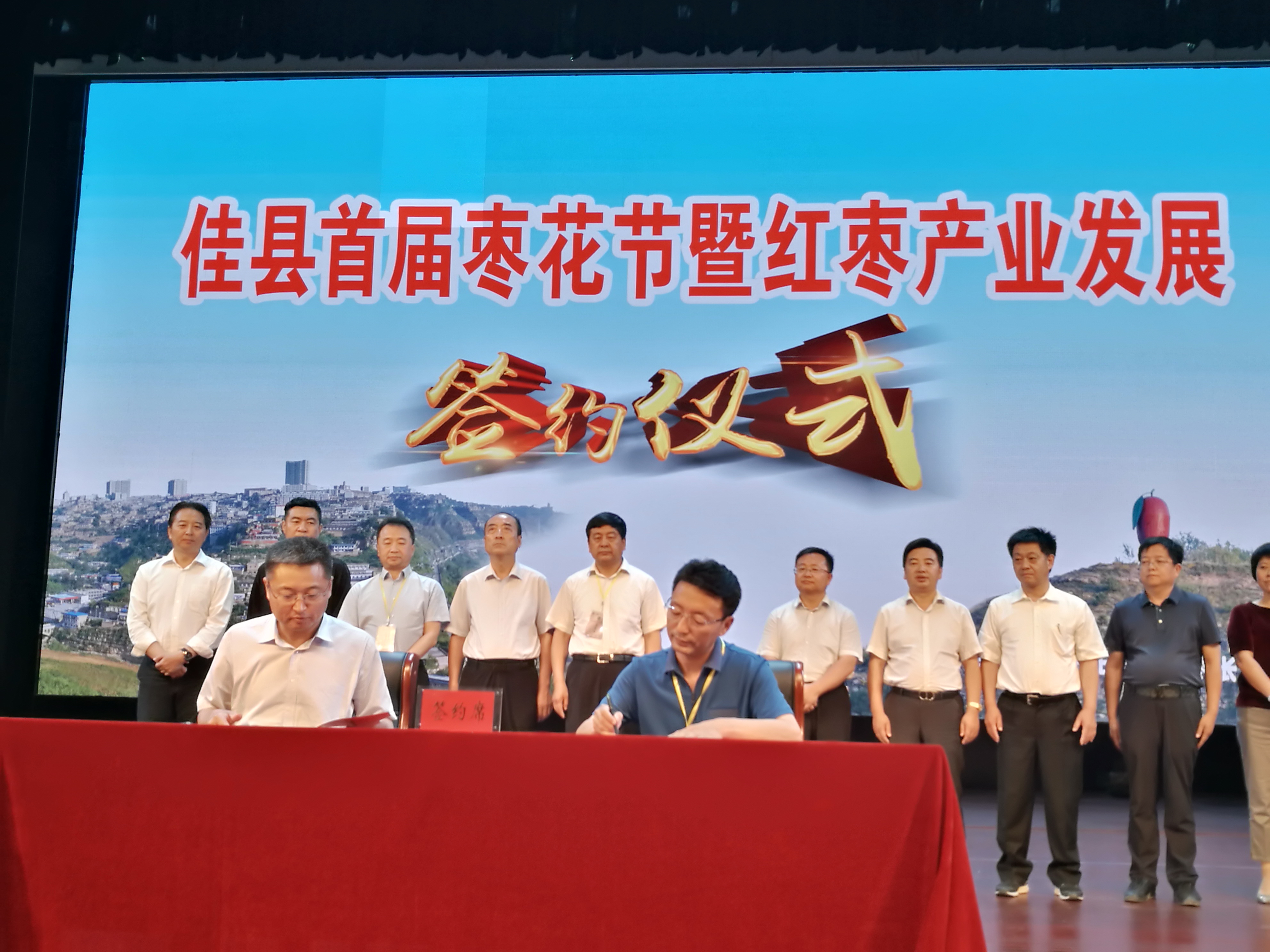 校党委副书记赵作纽代表西北大学与佳县人民政府县长杨政签署了有关红枣产业战略合作框架协议。协议规定,双方以《健康中国2030》规划纲要和《佳县红枣产业发展规划》为指导,在省科技厅、林业厅和农业厅等部门的支持下,联合开展红枣功能性食品和红枣健康食品的研制工作,提升佳县红枣食品技术水平和成果转化。