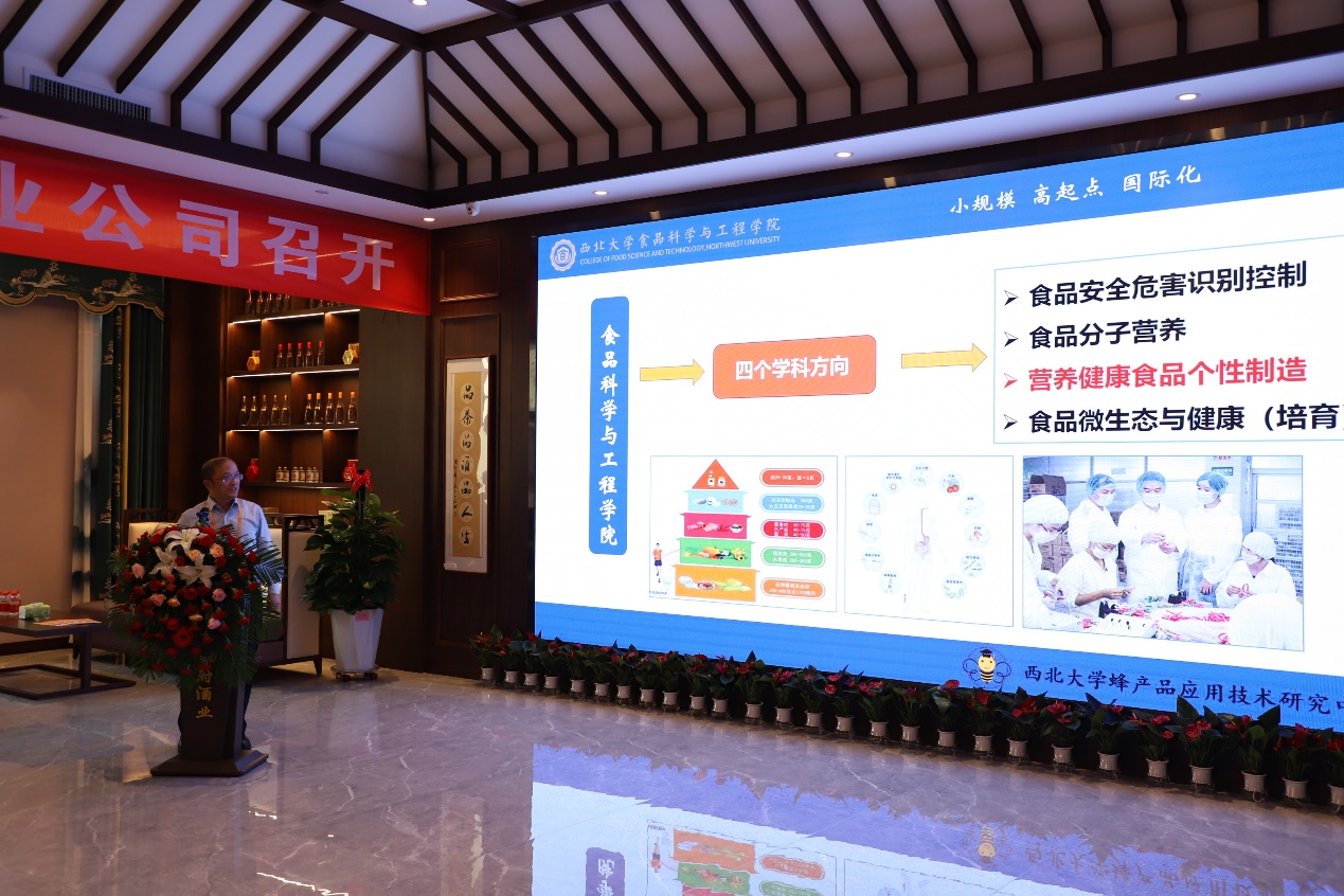 会上举行了beat365在线体育官网与山西皇城相府酒业有限公司产学研合作基地揭牌仪式,刘晓忠书记与皇城相府酒业党支部书记兼董事长郭新胜共同为山西皇城相府酒业有限公司-西北大学产学研基地合揭牌,刘晓忠在发言中表示学院将以此为契机,发挥高校优势,与公司共同做好人才培养和科技研发与转化。beat365在线体育官网程妮教授与皇城相府酒业公司签署了专利成果转化协议,将蜂产品团队2项发明专利转让给公司,为山西皇城相府酒业有限公司新产品研发提供技术支撑。