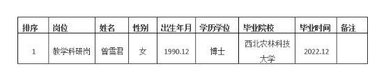 经本人申请、学院资格审查、考核等环节,beat365在线体育官网拟确定下列人员来beat365在线体育官网工作。本着公平、公开、公正的原则,现将本次选聘人员基本情况公示如下: