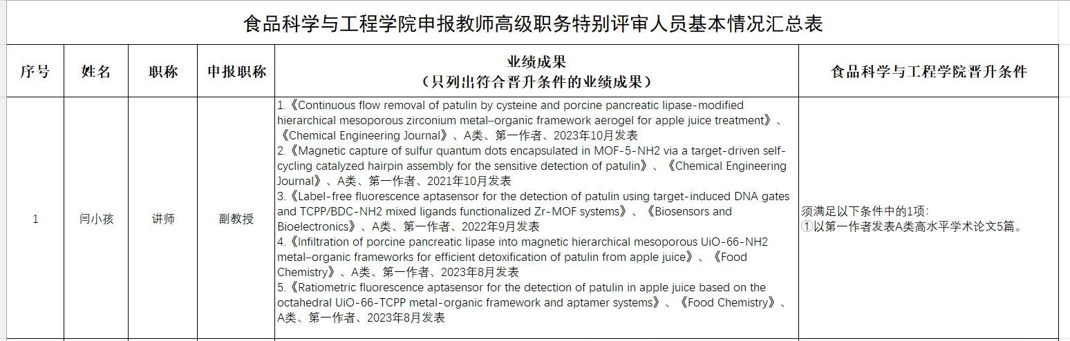 经2024年10月28日学院学术委员会审核、党政联席会议讨论研究,决定闫小孩通过2024年第二次教师高级职务特别评审资格审查。具体条件见下表。