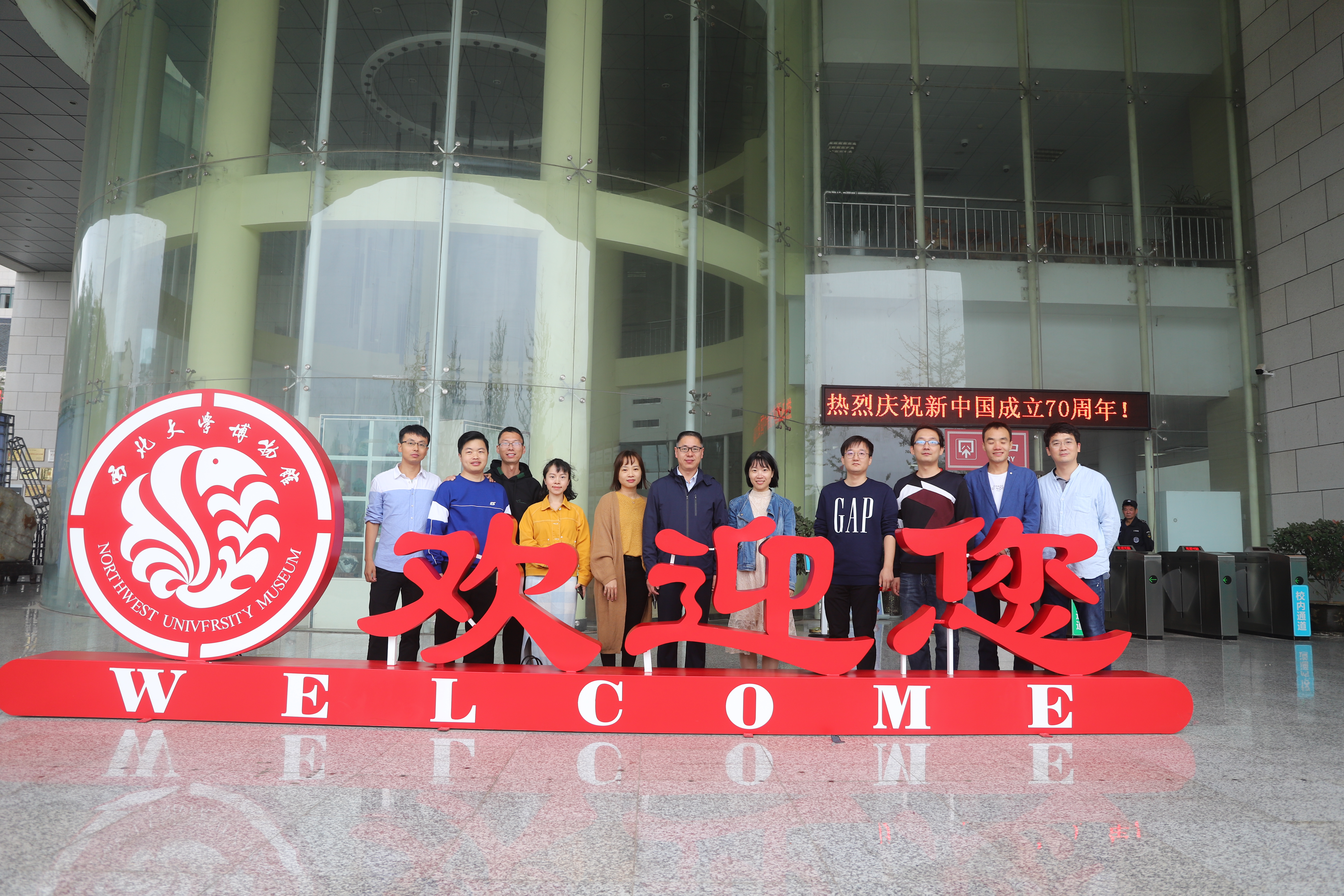 校友代表和老师在博物馆门前合影