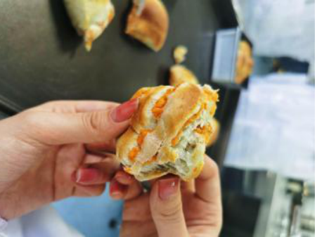 在完成了全麦面包工艺制作体验之后,同学们于2021年1月13日、14日,开始了自己的创意体验之旅。52名同学分成13组,亲自设计、制作各色面包,感受面团在手中“重塑新生”的过程,出色完成了13款集颜值、口感、营养于一身的创意面包的设计与制作。快一起来看看食院出品,仅此一家的专属面包们吧~