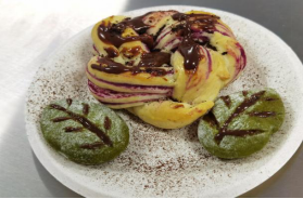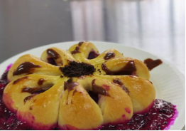 用健康的材料,表现出多样的口味,用普通的面包,传递希望的信念。2020年的寒冷煎熬已过,我们寄情于面包,一起期待2021的春天。看,这些花形面包,散发着紫薯香味,撒上一层香醇的巧克力,搭配着红心火龙果果酱,一口咬下去,果香奶香一起侵袭你的味蕾。