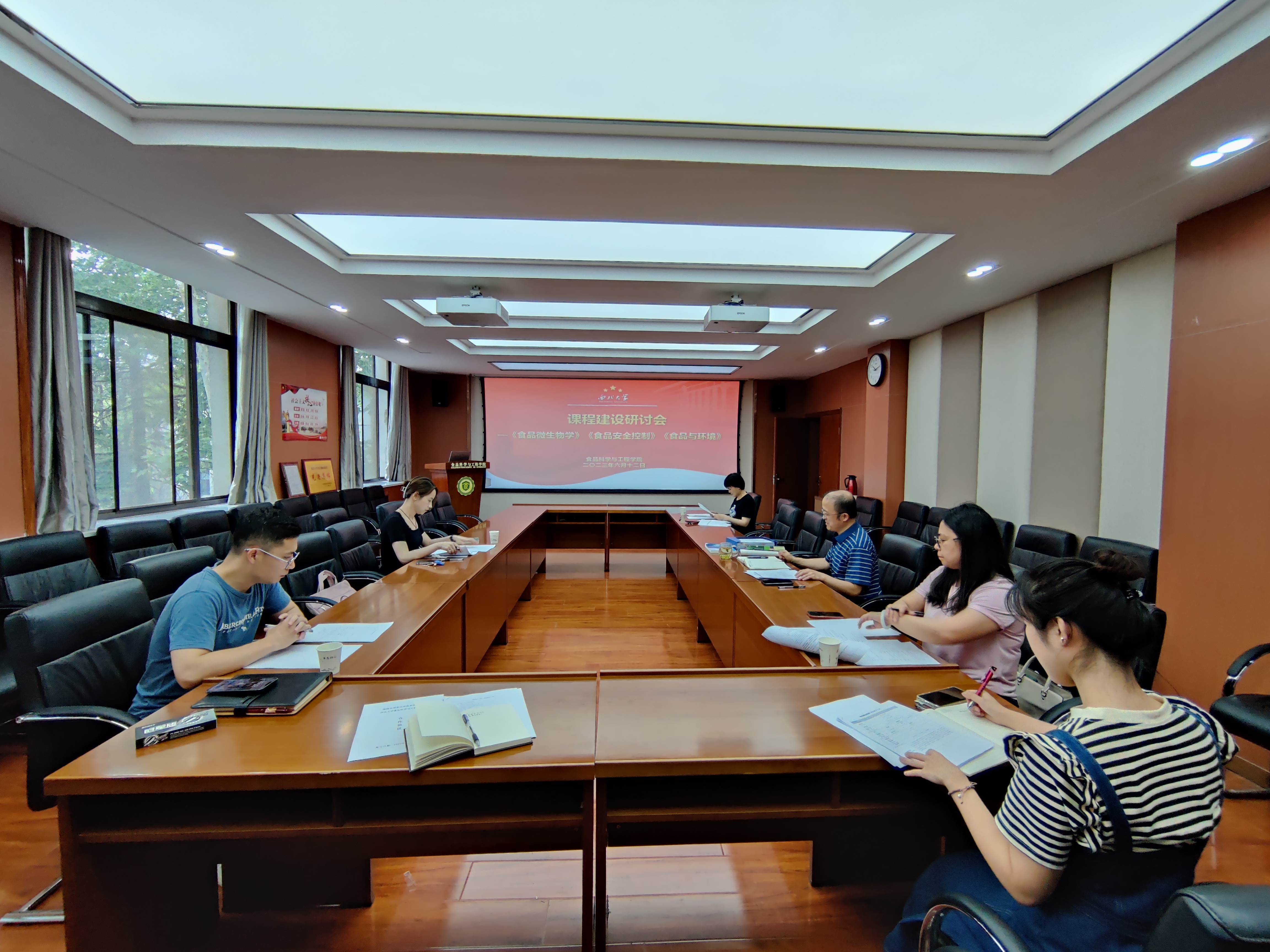 为进一步提高本科人才培养质量,优化课程内容,6月12日上午学院召开了第三次课程建设研讨会。本次会议主要围绕《食品微生物学》《食品安全与质量控制》与《食品与环境》三门课程展开讨论,会议由曹炜副院长主持,高慧教授、骆艳娥教授、白武双副教授、王银讲师及教务办相关教师参加会议。