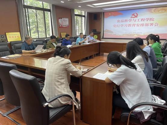 会议要求,要将开展党纪学习教育同落实党中央重大决策部署和省委重要工作安排紧密结合,同巩固拓展学习贯彻习近平新时代中国特色社会主义思想主题教育成果有机衔接,同深化干部作风能力提升年活动紧密结合,同贯彻落实学校第十四次党代会目标要求、推进食品学科高质量发展紧密结合,使党纪学习教育成为促进学院改革发展迭代升级的有效保障,把党纪学习教育成效切实转化为推进学院高质量发展的强大动力。