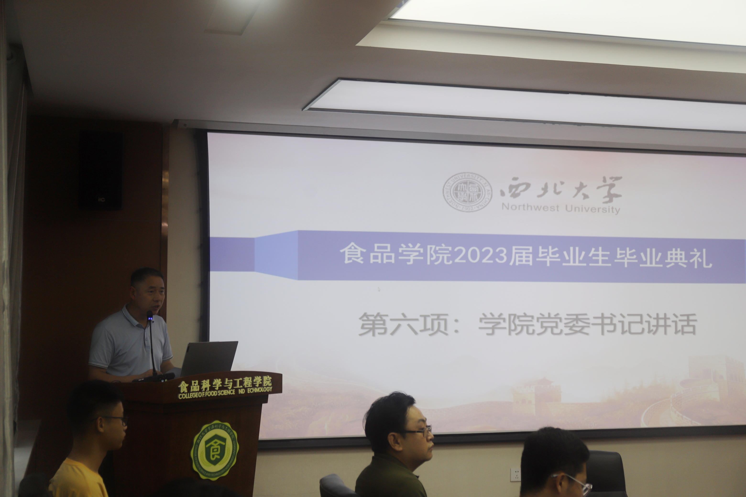 毕业骊歌起,再踏新征程。7月3日上午,食品学院2023届毕业生毕业典礼在学院会议室举行。学院党委书记刘晓忠、院长岳田利、副院长曹炜,学院袁亚宏教授、白武双副教授、毕业班班主任郭森、毕业班辅导员及2023届毕业生出席毕业典礼。典礼由学院党委副书记张霄主持。