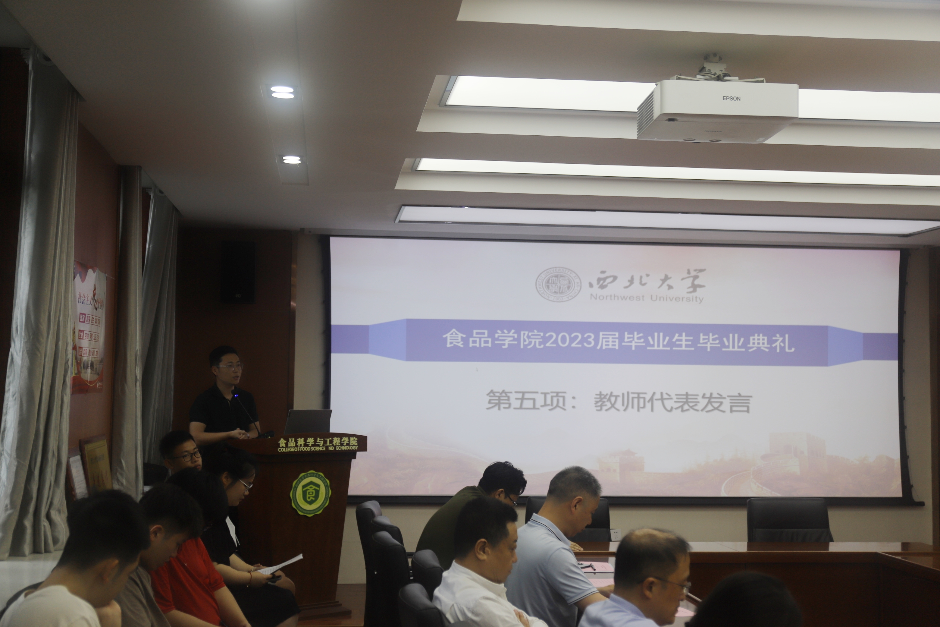 白武双副教授代表全体教师发言。他勉励全体毕业生要志存高远,脚踏实地,不断磨练本领、勤奋努力、追求进步,用自己的实际行动去诠释食品学子的责任与担当。