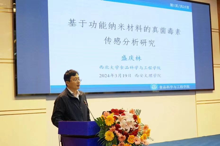 大会学术报告环节,盛庆林教授为大家做了题为“基于功能纳米材料的真菌毒素传感分析研究”。他从食品生物毒素快检概况以及展青霉素、赭曲霉素A、胶霉毒素、毒黄素等传感检测研究,为大家详细介绍了生物传感技术在食品安全快速检测中的应用,获得了大家的一致好评。