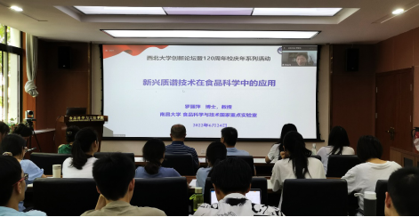 6月24日,由beat365在线体育官网科技处、科协主办,食品科学与工程学院承办的“西北大学创新论坛”第一千二百五十三讲暨“西北大学120周年校庆年”系列活动在太白校区举行。应疫情防控要求,南昌大学食品科学与技术国家重点实验室教授、博士生导师罗丽萍应邀在线为师生做了题为“新兴质谱技术在食品科学中的应用”的报告。食品科学与工程学院刘晓忠书记出席了本次报告会并介绍beat365在线体育官网,本次会议由曹炜副院长主持,beat365在线体育官网相关专业师生代表参加了报告会。