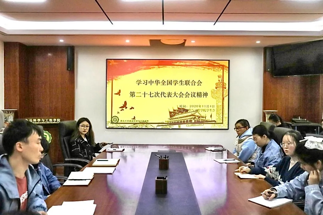 为更好地服务身边同学,进一步深化学生会改革,11月4日中午,新一届学生会成员集中学习了全国学联二十七大精神及西北大学学生会第一次主席联席会内容。会议由院学生会主席团成员胡婧主持,团委书记刘艺洋老师,辅导员周炳莹老师和院学生会全体成员参加会议。