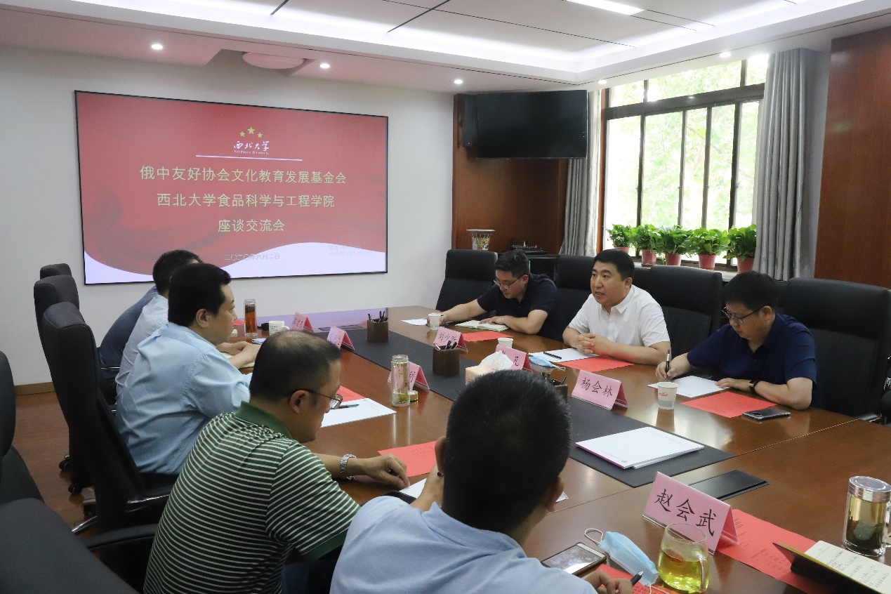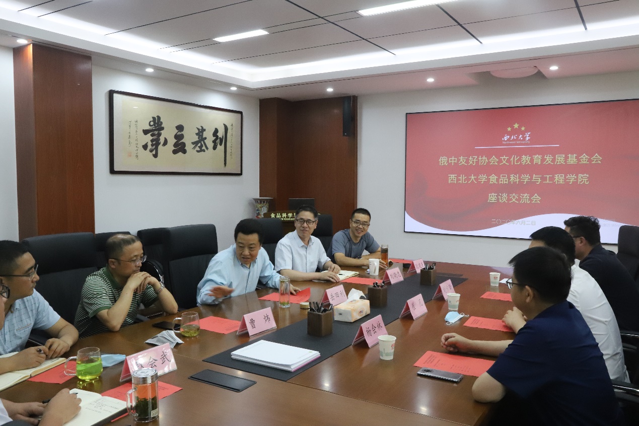 接下来,岳田利院长向崔秘书长等人介绍了食品科学与工程学院的基本情况。对于中俄双方合作,他提出双方的合作可以就以下四方面开展:一是与俄罗斯大学或者科研机构建立国际联合实验室,从事食品科学技术、营养健康食品方面的研究,搭建食品科学、技术研究交流平台;二是双方联合培养硕士、博士研究生高级人才,由双方设立共同导师,指导中俄两国、一带一路沿线国家食品学科研究生的学习研究;三是联合培养本科生。彼此进行2+2、3+1等多种模式的本科生培养机制,双方学生学分、学位证书互相认可,双方学生在毕业时获得中俄两国学历学位证书;四是中俄双方联合申报国家重大合作项目,获得中俄政府支持,开展合作研究,形成一带一路地区有影响力的研究成果。
