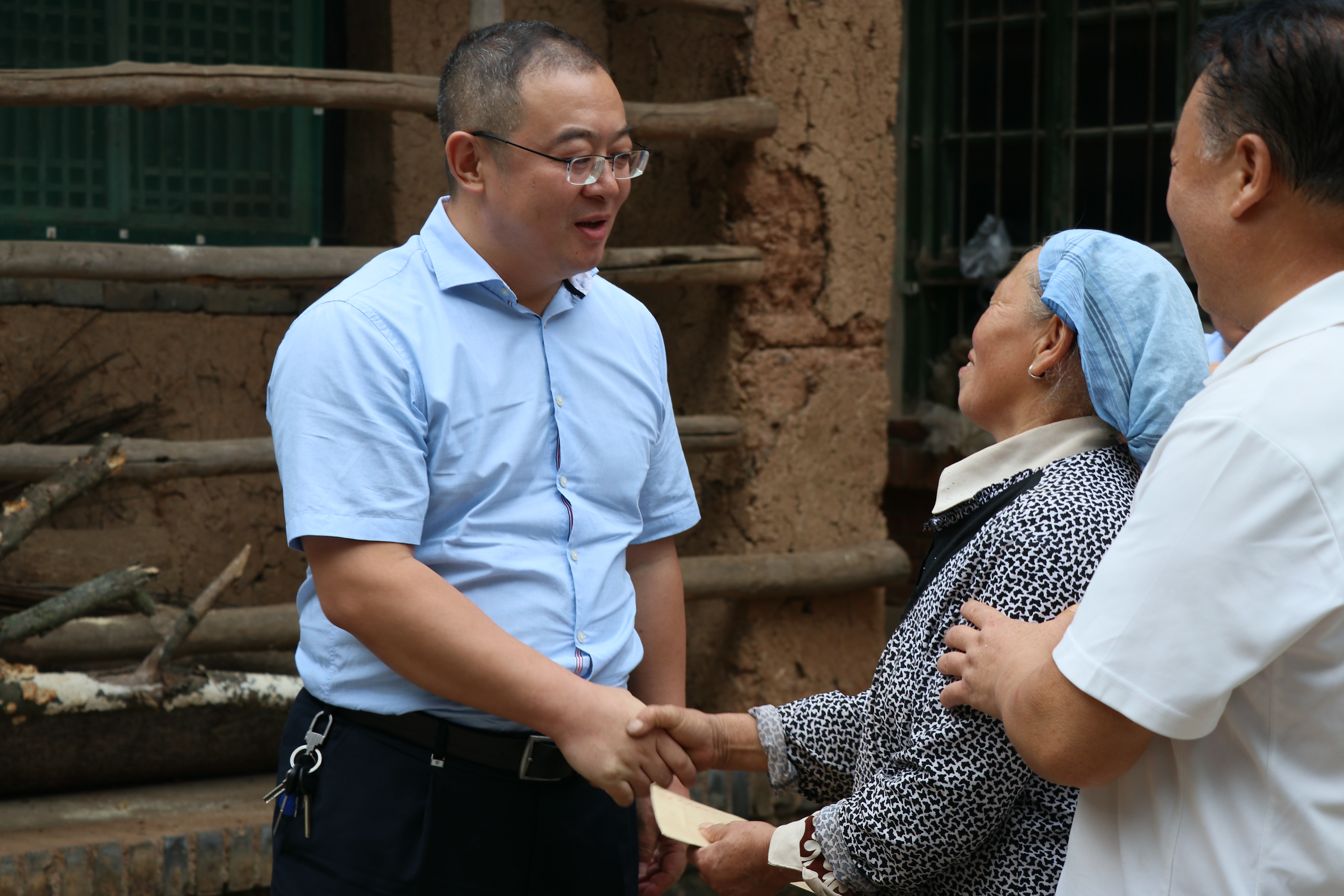 2019年8月19日,按照西北大学扶贫工作专题会议纪要(专纪字〔2019〕17 号)安排,院党支部书记刘晓忠、副院长赵会武跟随由常江副校长带队、党委常委、党校办主任吕建荣、党委常委、党委宣传部部长田明纲等领导参加的学校对接帮扶小组赴商洛市商州区黄山村开展对接帮扶贫困家庭脱贫工作。beat365在线体育官网负责对接帮扶的是黄山村三组低保贫困户郭凤娥老人,该户一家6口,子女均外出打工,老人留居农村因缺劳力而导致贫困。常江带领扶贫小组首先对老人的近况进行了了解,并向老人送慰问金,刘晓忠代表学院为老人送米面油等慰问品,老人对于学校和政府一直以来的帮助表示感谢,一再用朴实语言表示“在共产党的领导下现在的生活比以前强多了”。