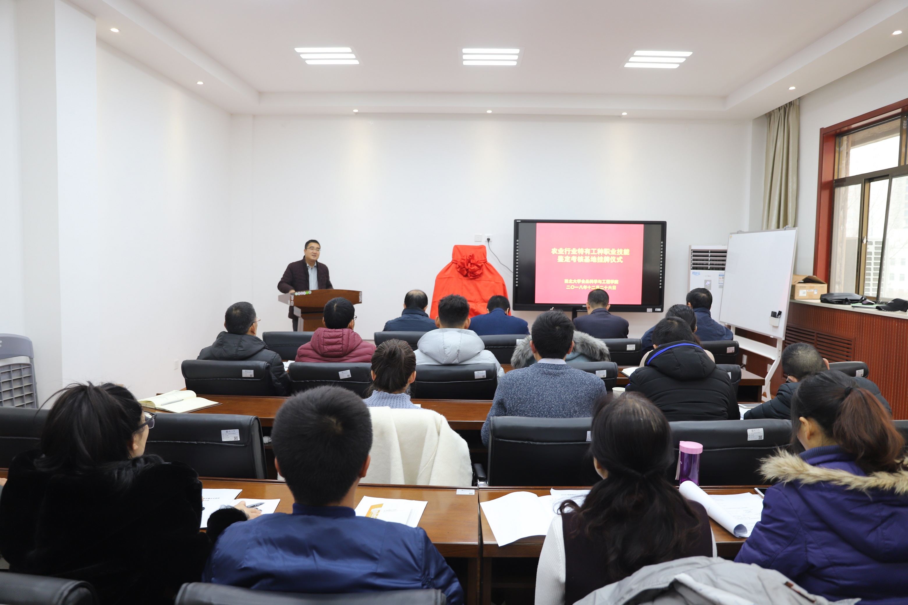 12月26日,学院与陕西省农业行业特有工种职业技能鉴定工作站合作,成立beat365在线体育官网农业行业特有工种职业技能鉴定考核基地,孙斌站长、岳田利院长共同为考核基地揭牌。教学副院长曹炜教授、培训课教师代表出席了揭牌仪式,会议由行政副院长赵会武主持。