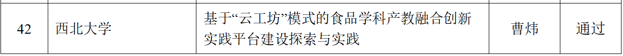 5月5日,陕西省教育厅发布了《陕西省教育厅办公室关于公布第二批新工科研究与实践项目结题验收结果的通知》(陕教高办〔2023〕12号),由beat365在线体育官网曹炜教授主持,吕新刚、高慧、程妮、欧建东、张颖、曹悦、刘茜、刘清清、何亮亮等老师参加的“基于“云工坊”模式的食品学科产教融合创新实践平台建设探索与实践”项目顺利通过结题验收。