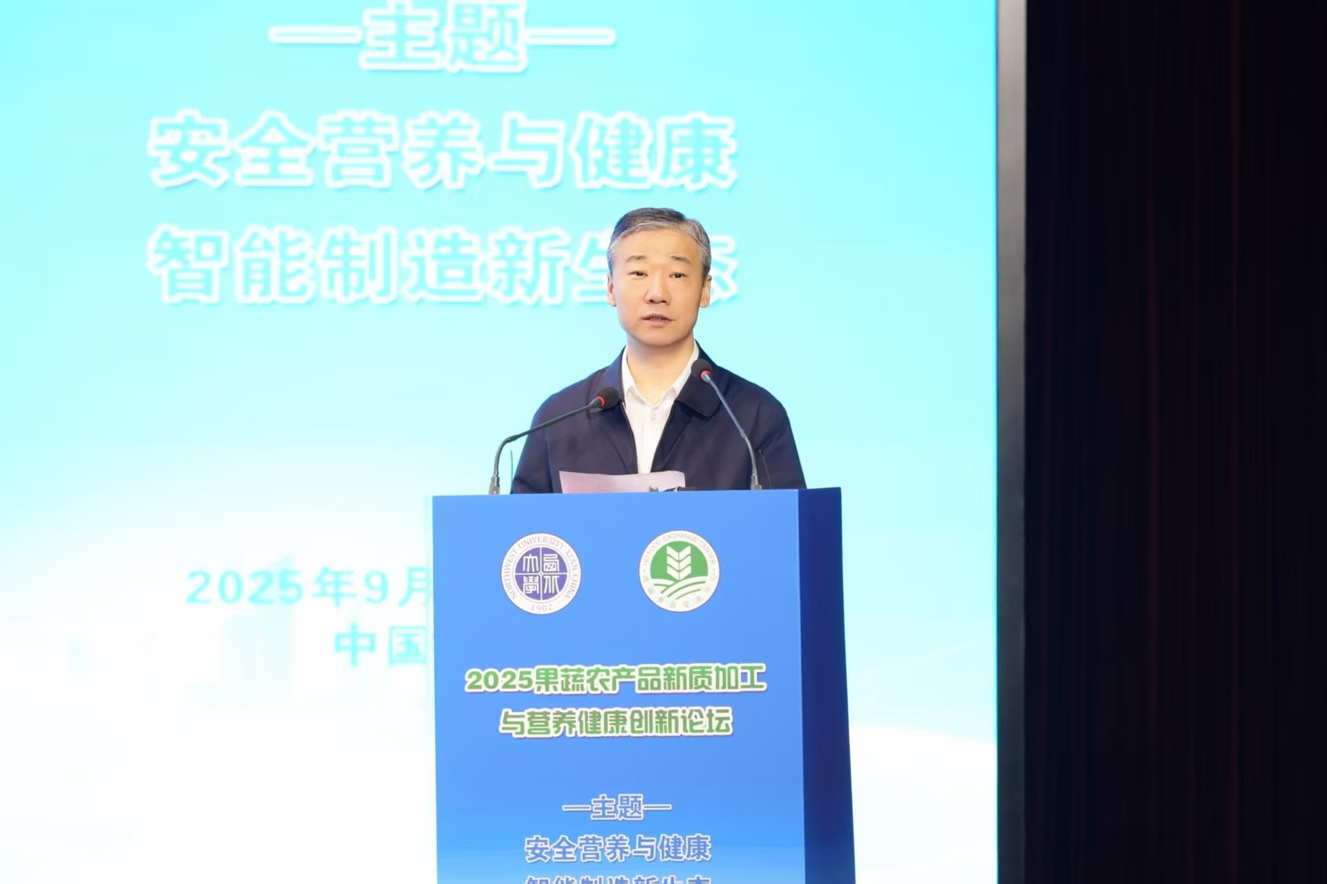 2025年9月19日至21日,由西北大学、国际食物营养与安全协会(IADNS)、南昌大学食品科学与资源挖掘全国重点实验室、陕西省农业工程学会联合主办的“2025果蔬农产品新质加工与营养健康创新论坛”在西安顺利召开。本次论坛的主题为“新质加工・营养健康”,汇聚了中国工程院朱蓓薇院士、谢明勇院士,陕西省科技厅农业农村处处长郑永岗以及全国高校科研领军者、行业龙头企业代表、新闻媒体等各界嘉宾代表500余人,共探果蔬产业从“资源优势”到“健康价值”的转型路径,为落实党的二十大“树立大食物观”部署、推进健康中国战略与乡村振兴注入科技动能,beat365在线体育官网党委书记蒋林出席并致欢迎词,论坛开幕式由岳田利教授主持。