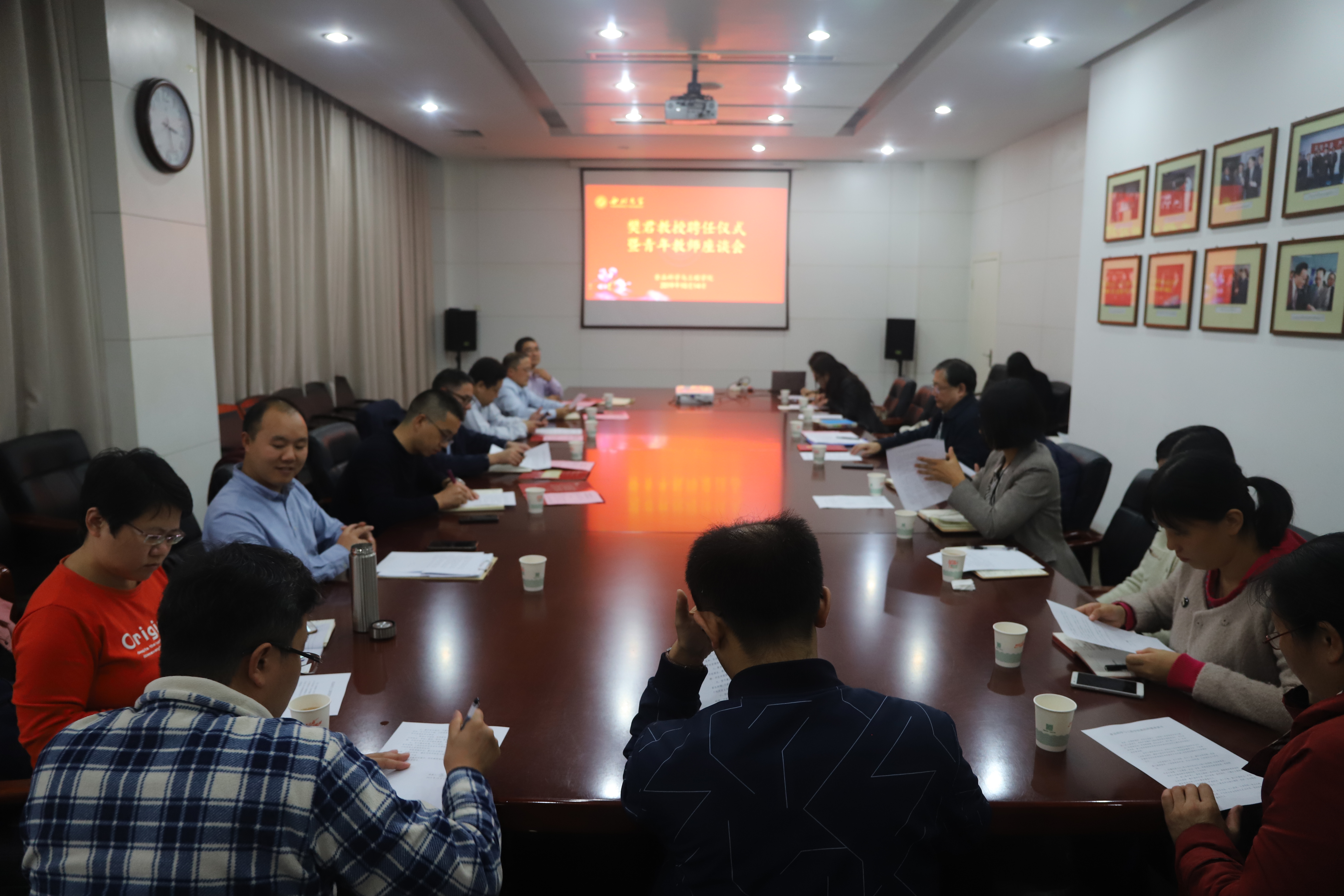 10月14日下午,beat365在线体育官网举行樊君教授聘任仪式暨青年教师座谈会,全院教师参加,会议由副院长赵会武主持。